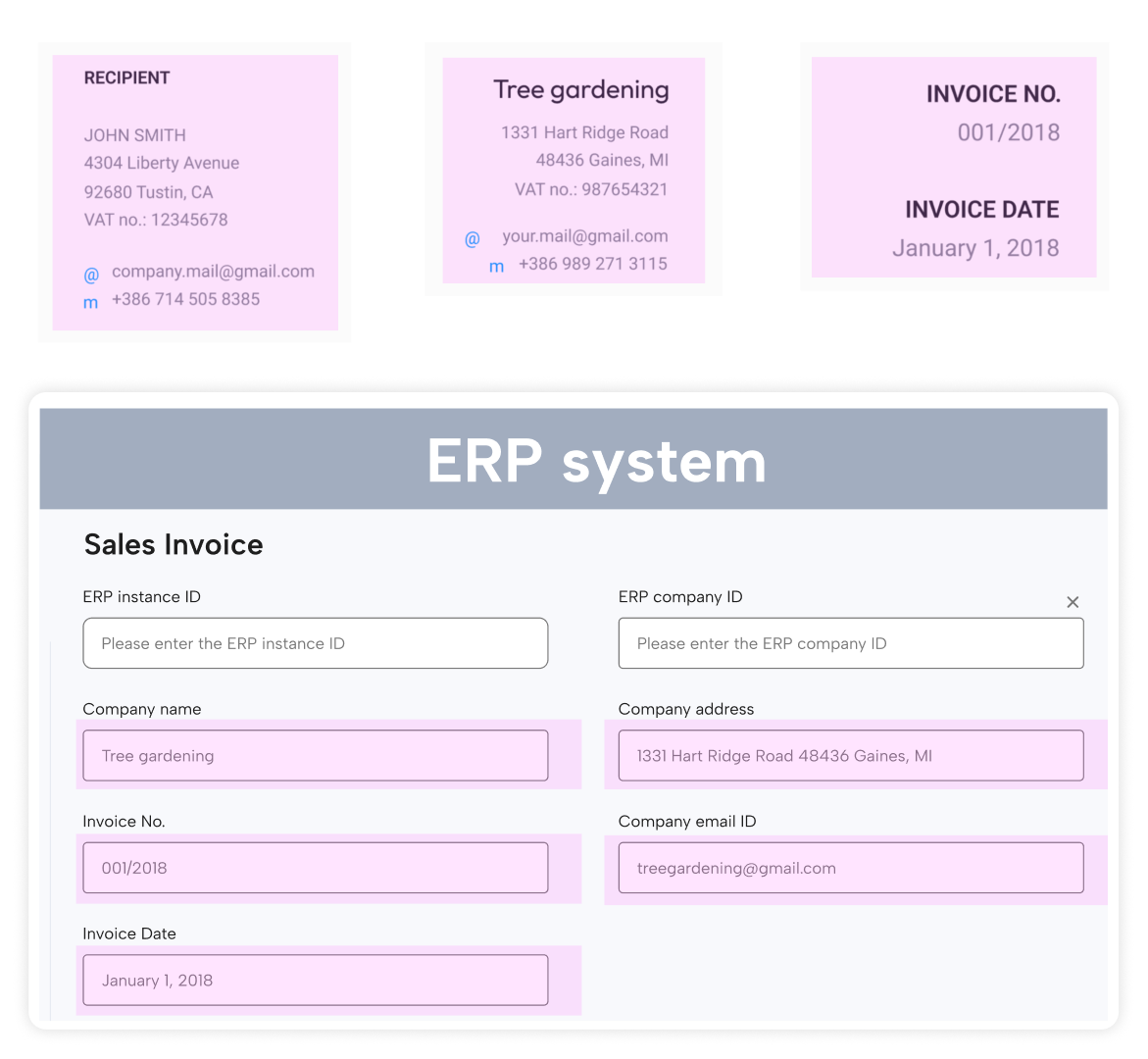 Q: What is the integration process between email attachments and OCR apps and ERP systems?