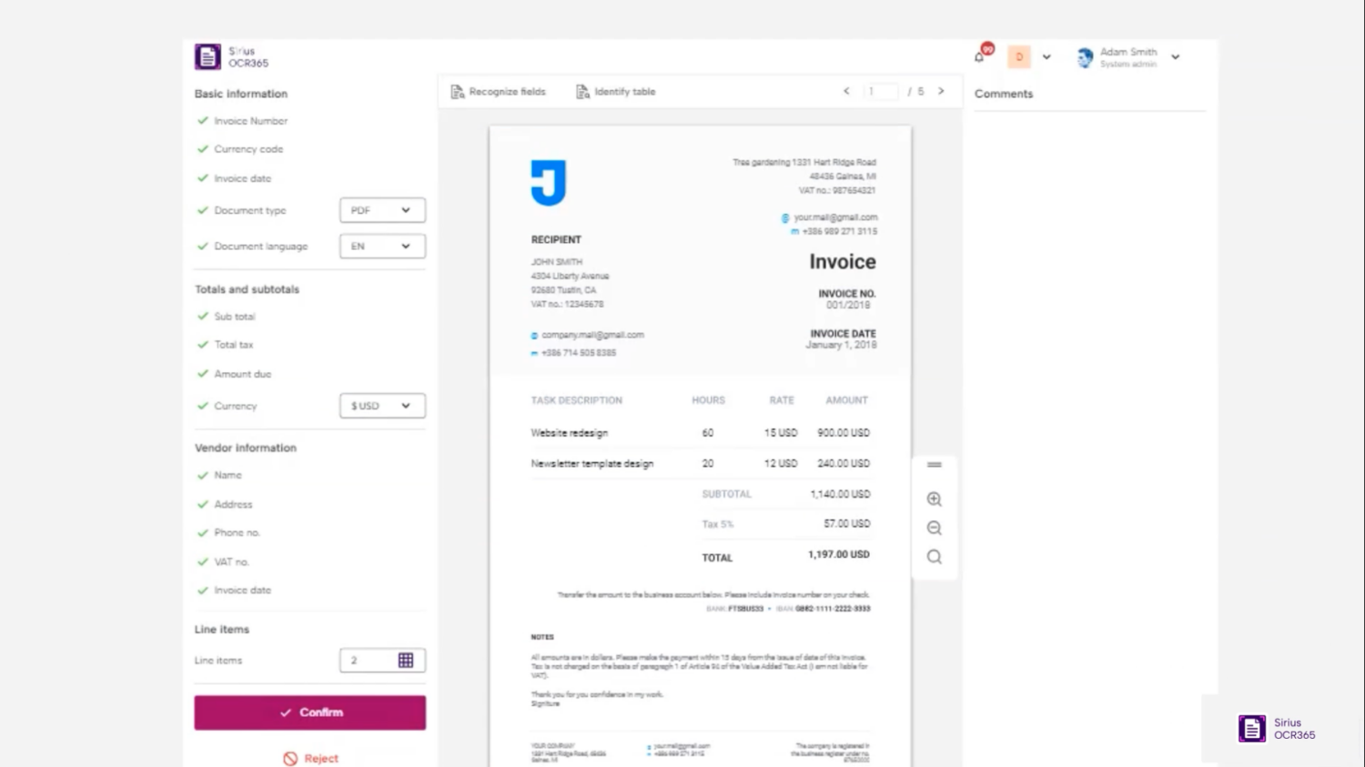 With Sirius OCR 365, invoice management becomes automated, accurate, and stress-free. Free your team from manual tasks, reducing errors to zero.