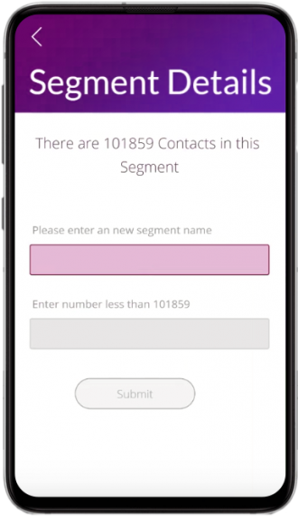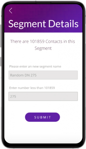 Easily create random audience segments for your campaigns. Just enter the required sample size and click submit. Our app automatically creates a segment.