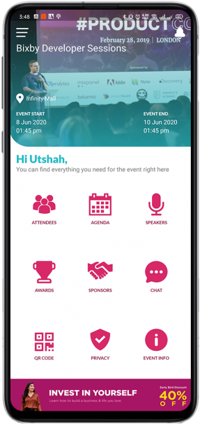 Fully brand and/or customise Attendee App to suit your needs. Get in touch with our team today. Available on iOS and Android.
